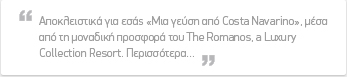Η Costa Navarino ο νέος ποιοτικός προορισμός της Μεσογείου, βρίσκεται στη Μεσσηνία. Με σεβασμό στο φυσικό πλούτο και στην πολιτισμική κληρονομιά της περιοχής, αναπτύσσονται διεθνούς φήμης πολυτελή ξενοδοχεία, signature γήπεδα γκολφ, spa με θεραπείες εμπνευσμένες από την αρχαία Ελλάδα, αθλητικές και πολιτιστικές δράσεις μοναδικές στην Ευρώπη. Η Aegean σε συνεργασία και με την υποστήριξη της Costa Navarino, συνδέει από τις 14 Μαϊου την Καλαμάτα (Μεσσηνία) με την Αθήνα.
