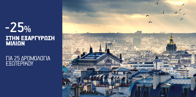 25% στην εξαργύρωση μιλίων για 25 δρομολόγια εξωτερικού!